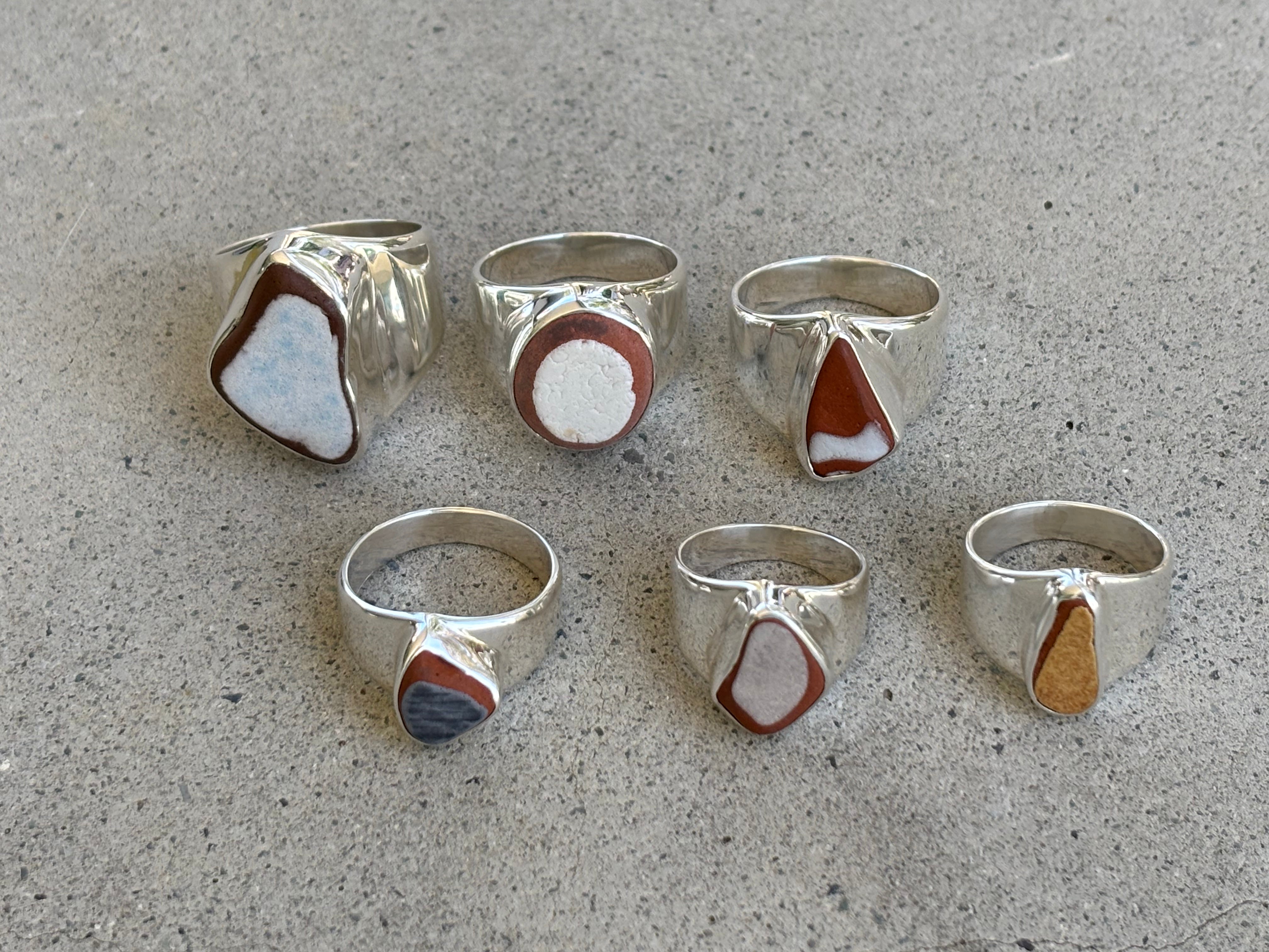 I then design my collection keeping each piece exactly as found into rings , earring, bangles and pendants , then my talented silversmith preserves them forever in silver.